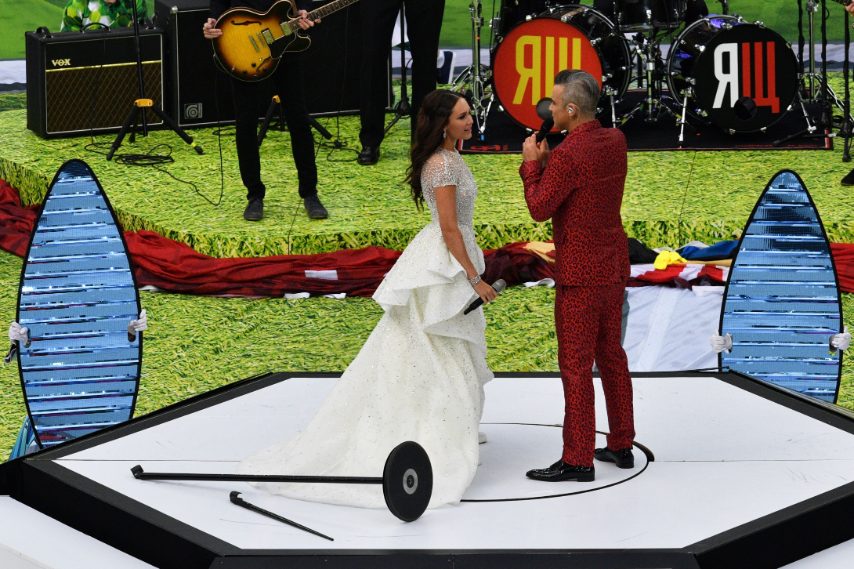 Prima di Russia-Arabia Saudita, gara inaugurale del Mondiale 2018,  c'è stata breve ma molto intensa cerimonia d'apertura. Protagonisti il cantante inglese Robbie Williams, la bravissima soprano russa Aida Garifullina e gli ex calciatori Ronaldo, il 'Fenomeno', e Iker Casillas.
