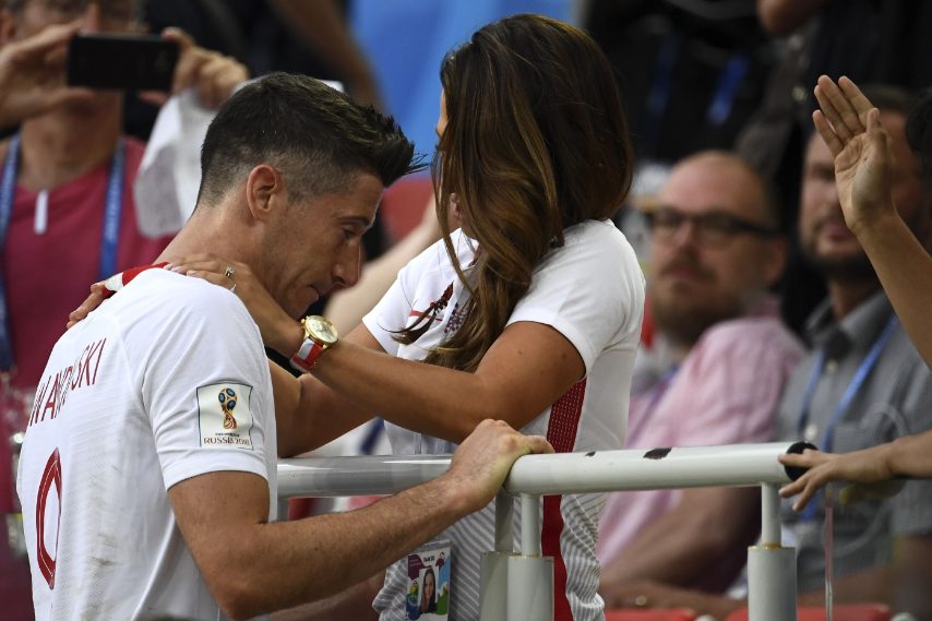 Anna Lewandowska a fine gara consola suo marito dopo la sconfitta nella gara d'esordio ai Mondiali contro il Senegal. Bellissimo e tenerissimo il momento immortalato sugli spalti: il campione polacco del Bayern Monaco riceve l'abbraccio e un affettuoso bacio dalla ragazza.
