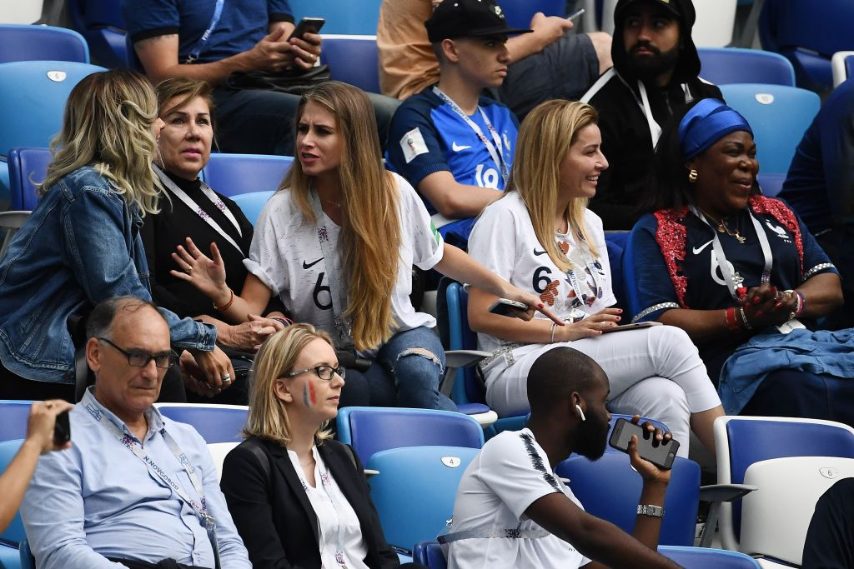 Le foto della modella boliviana sulle tribune degli stadi di Russia 2018 mentre segue le partite del fidanzato Paul Pogba in compagnia della mamma del calciatore