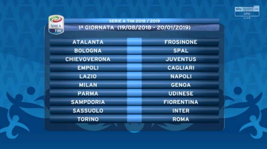 Il calendario della Serie A 2018-2019