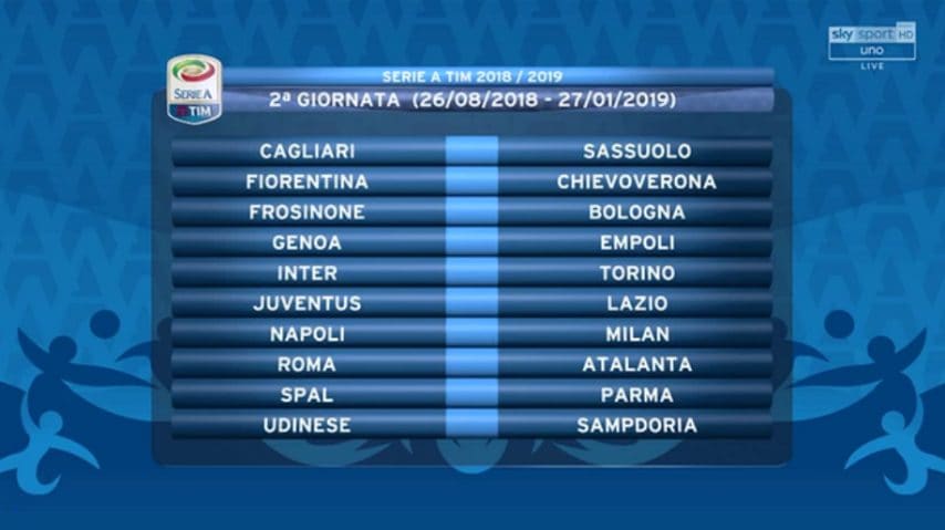 Il calendario della Serie A 2018-2019
