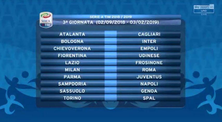 Sorteggiato il calendario del campionato di calcio di Serie A 2018-2019. Ecco tutte e 38 le giornate, con il programma di tutte le partite.