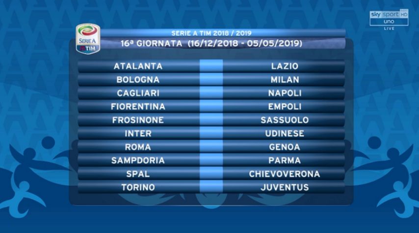 Quando si giocano i recuperi di Napoli, Milan, Inter e Bologna in Serie A dopo le partite di Supercoppa Le partite della 16ª giornata di Serie A di Napoli, Inter, Milan e Bologna si recuperano a gennaio. Già fissati le date e gli orari degli incontri che rendono durissimo il calendario.