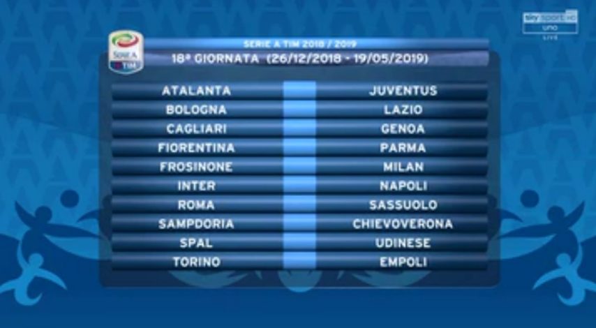 Il calendario della Serie A 2018-2019