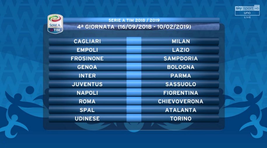 Il calendario della Serie A 2018-2019