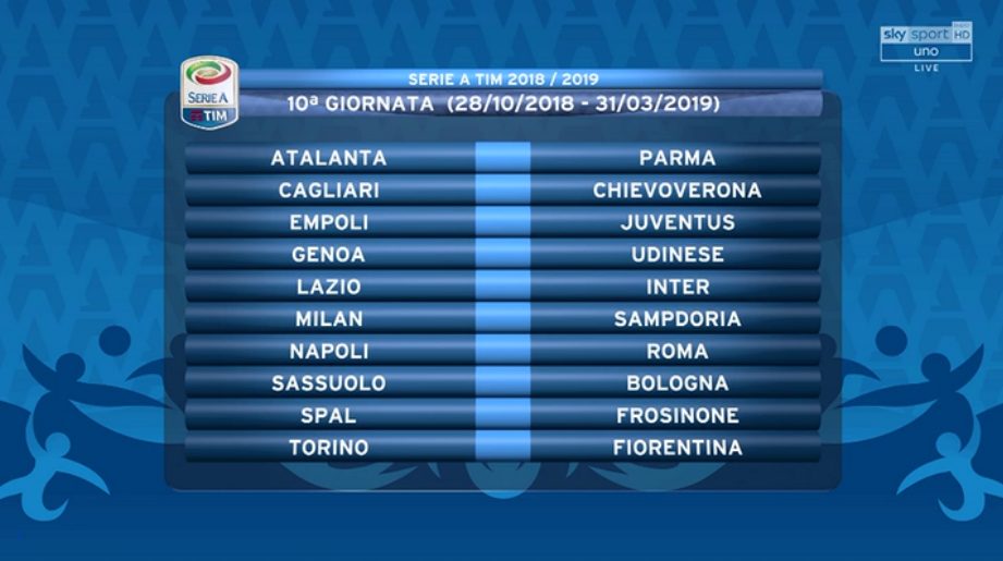 Sorteggiato il calendario del campionato di calcio di Serie A 2018-2019. Ecco tutte e 38 le giornate, con il programma di tutte le partite.