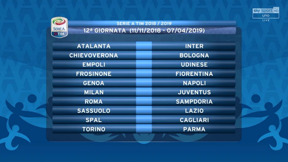 Sorteggiato il calendario del campionato di calcio di Serie A 2018-2019. Ecco tutte e 38 le giornate, con il programma di tutte le partite.