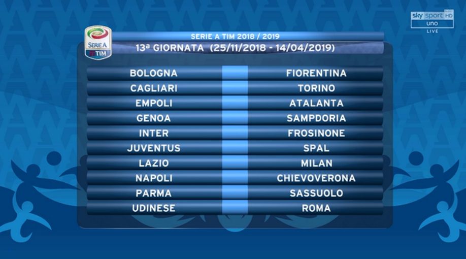 Sorteggiato il calendario del campionato di calcio di Serie A 2018-2019. Ecco tutte e 38 le giornate, con il programma di tutte le partite.