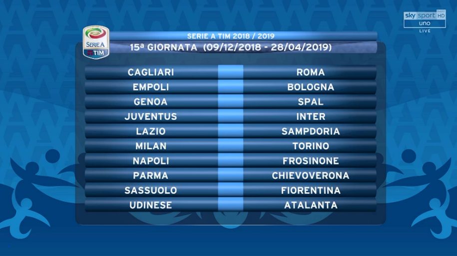 Sorteggiato il calendario del campionato di calcio di Serie A 2018-2019. Ecco tutte e 38 le giornate, con il programma di tutte le partite.