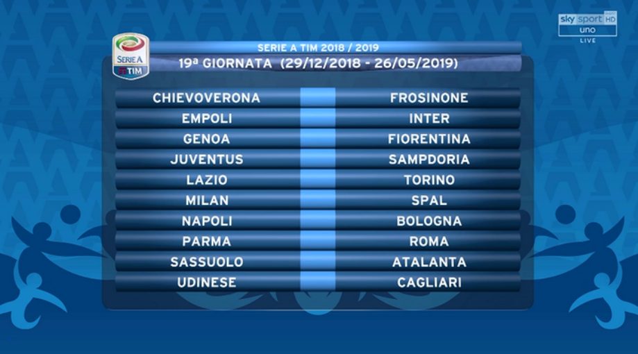 Il calendario della Serie A 2018-2019