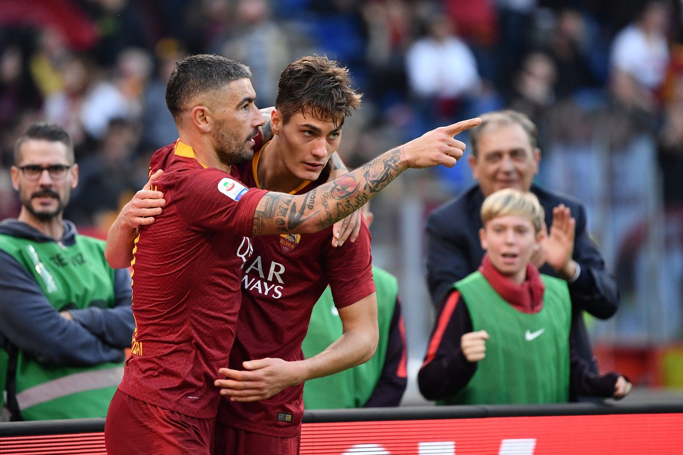 Il figlio 13enne Francesco Totti impegnato come raccattapalle in occasione della partita contro la Sampdoria. Esultanza in occasione del gol di Schick per il rampollo del Pupone posizionato dietro la porta