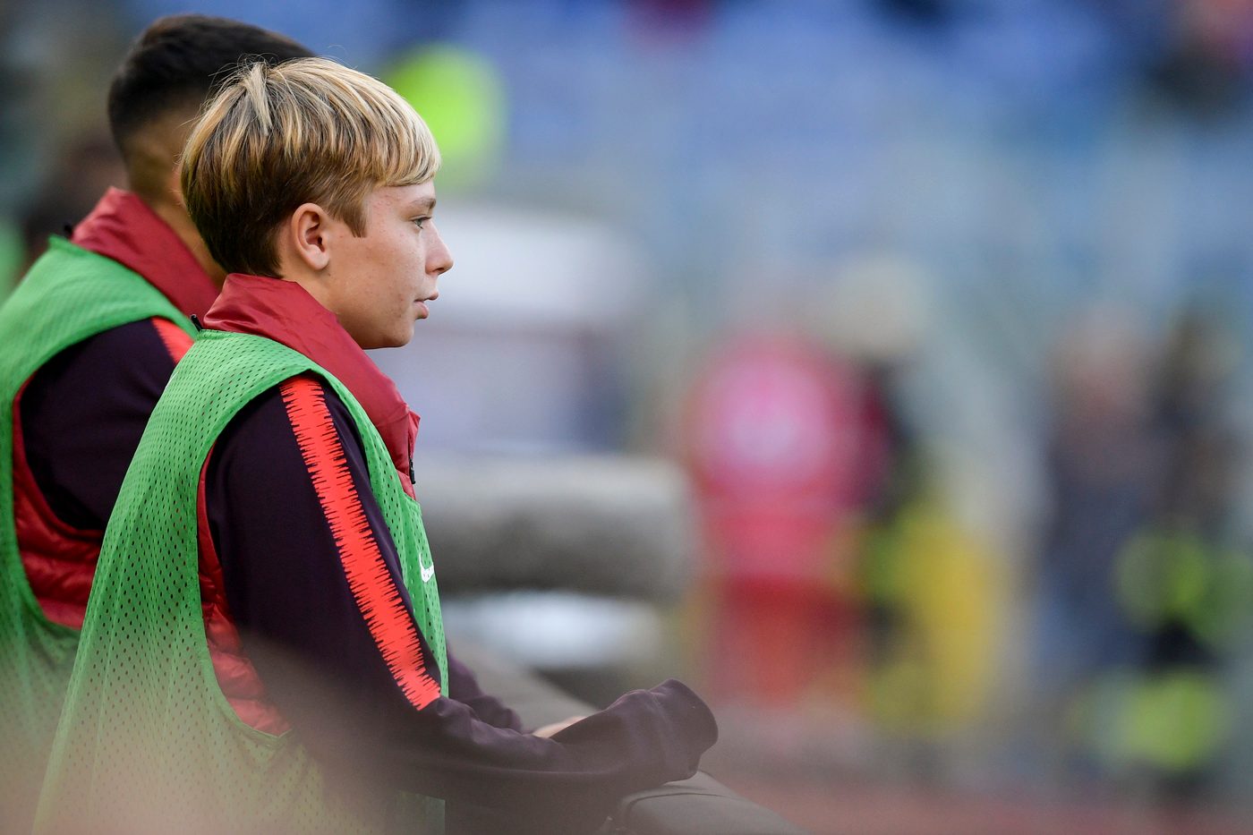 Il figlio 13enne Francesco Totti impegnato come raccattapalle in occasione della partita contro la Sampdoria. Esultanza in occasione del gol di Schick per il rampollo del Pupone posizionato dietro la porta
