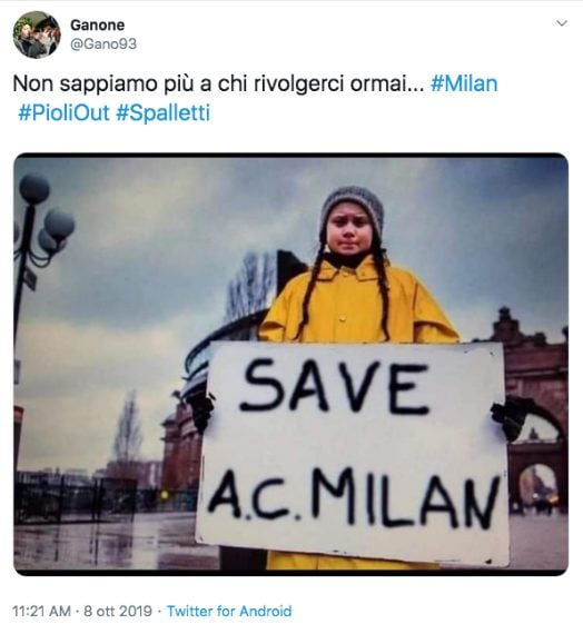 #Pioliout è l'hashtag di protesta dei tifosi del Milan che hanno contestato così la decisione della società di ingaggiare Stefano Pioli al posto dell'esonero Marco Giampaolo.