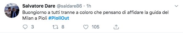 #Pioliout è l'hashtag di protesta dei tifosi del Milan che hanno contestato così la decisione della società di ingaggiare Stefano Pioli al posto dell'esonero Marco Giampaolo.