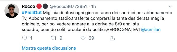 #Pioliout l'hashtag di protesta dei tifosi del Milan