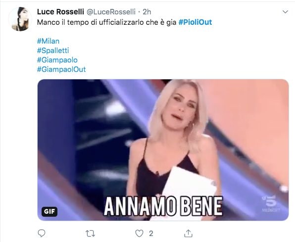 #Pioliout è l'hashtag di protesta dei tifosi del Milan che hanno contestato così la decisione della società di ingaggiare Stefano Pioli al posto dell'esonero Marco Giampaolo.
