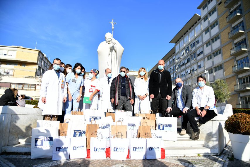 Parolo e Reina cuore d'oro: portano i regali di Natale all'ospedale del Bambin Gesù
