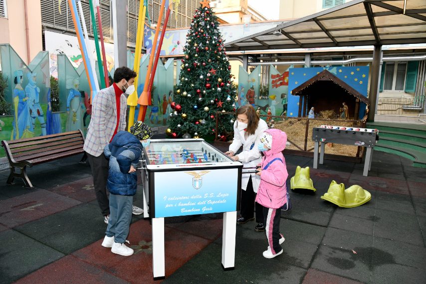 I giocatori della Lazio Marco Parolo e Pepe Reina hanno portato i doni di Natale all'ospedale del Bambin Gesù. Il centrocampista si è intrattenuto anche a giocare a calcio balilla con alcuni piccoli pazienti.
