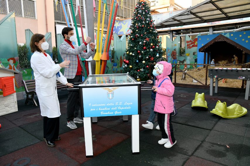 I giocatori della Lazio Marco Parolo e Pepe Reina hanno portato i doni di Natale all'ospedale del Bambin Gesù. Il centrocampista si è intrattenuto anche a giocare a calcio balilla con alcuni piccoli pazienti.