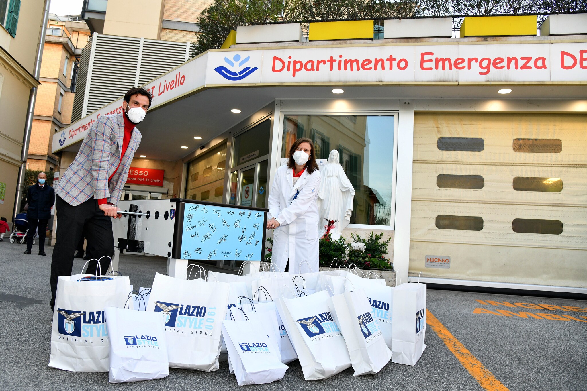I giocatori della Lazio Marco Parolo e Pepe Reina hanno portato i doni di Natale all'ospedale del Bambin Gesù. Il centrocampista si è intrattenuto anche a giocare a calcio balilla con alcuni piccoli pazienti.
