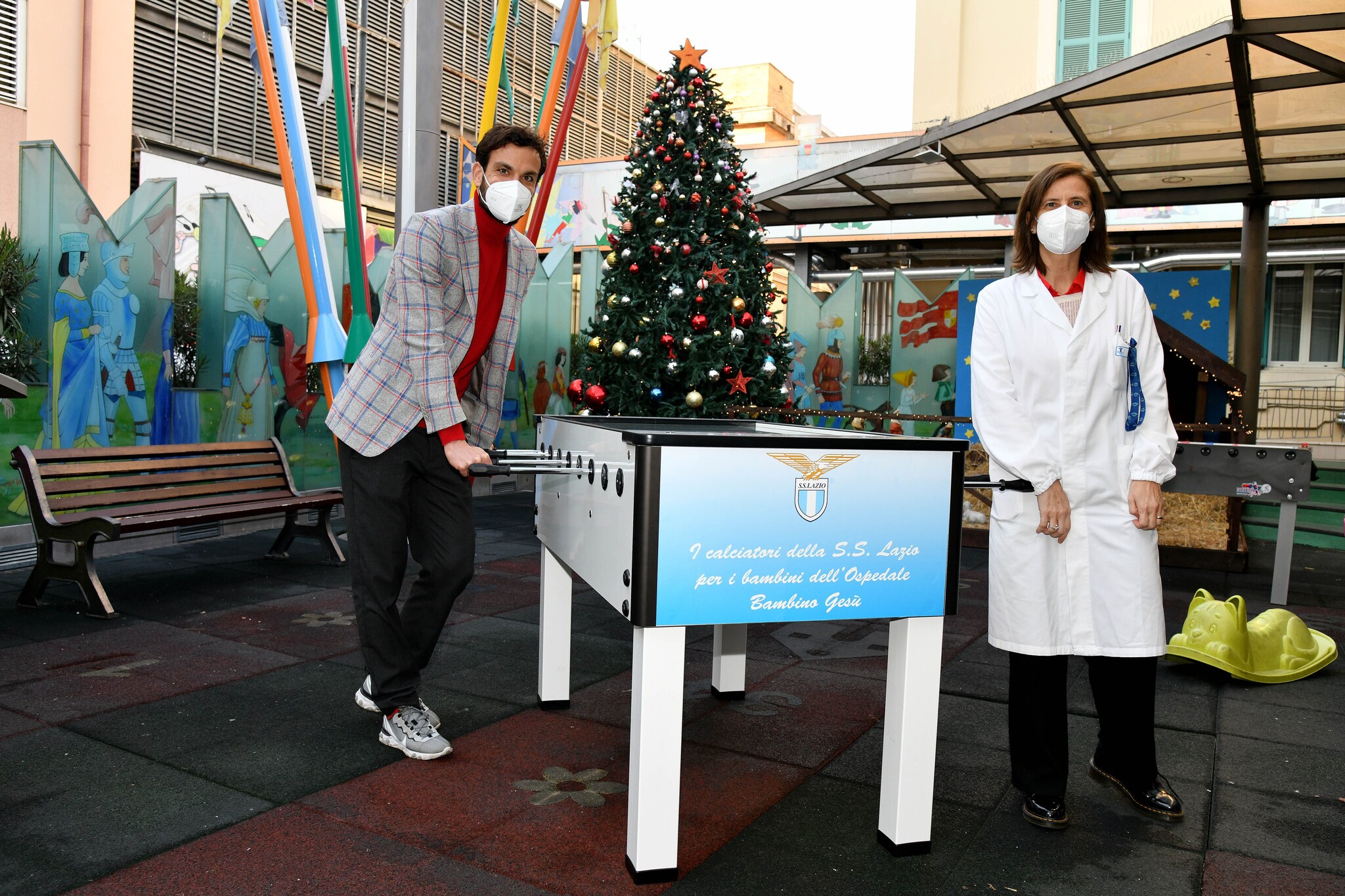 I giocatori della Lazio Marco Parolo e Pepe Reina hanno portato i doni di Natale all'ospedale del Bambin Gesù. Il centrocampista si è intrattenuto anche a giocare a calcio balilla con alcuni piccoli pazienti.