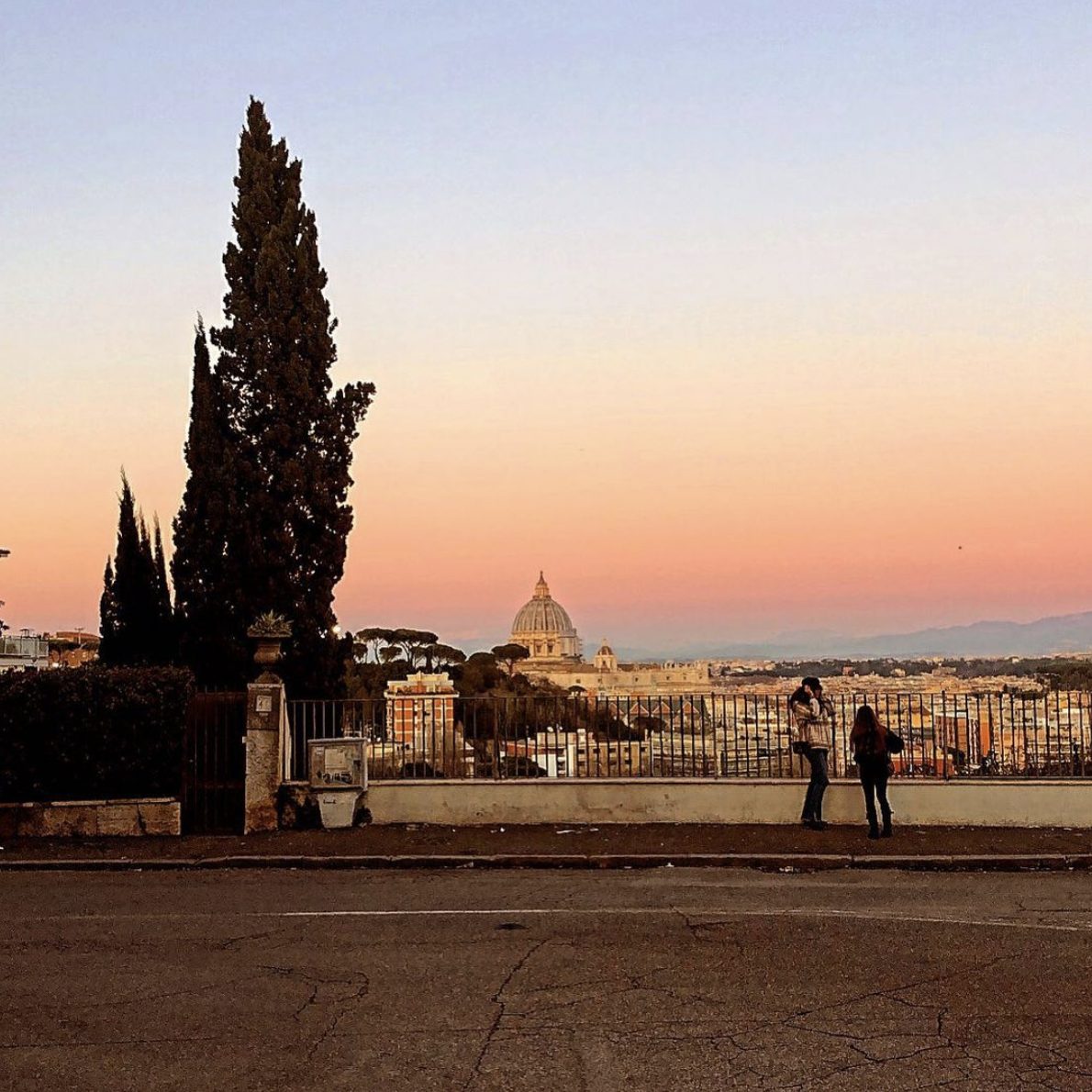 Una delle vedute più celebri della Capitale con un gioco di visuale e prospettiva particolare: dal fondo della strada la cupola della Chiesa di San Pietro appare piuttosto grande, più ci si avvicina alla ringhiera che c'è alla fine della strada e più la cupola tende a rimpicciolirsi agli occhi