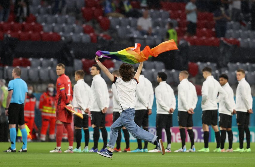 Germania-Ungheria, invasione di campo con bandiera arcobaleno: le immagini a pochi secondi dal fischio d'inizio