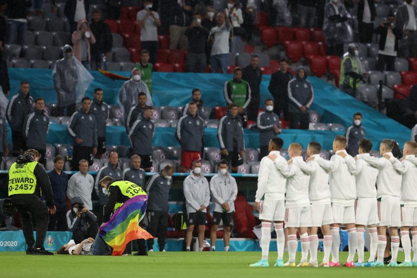 Germania-Ungheria, invasione di campo con bandiera arcobaleno: le immagini a pochi secondi dal fischio d'inizio