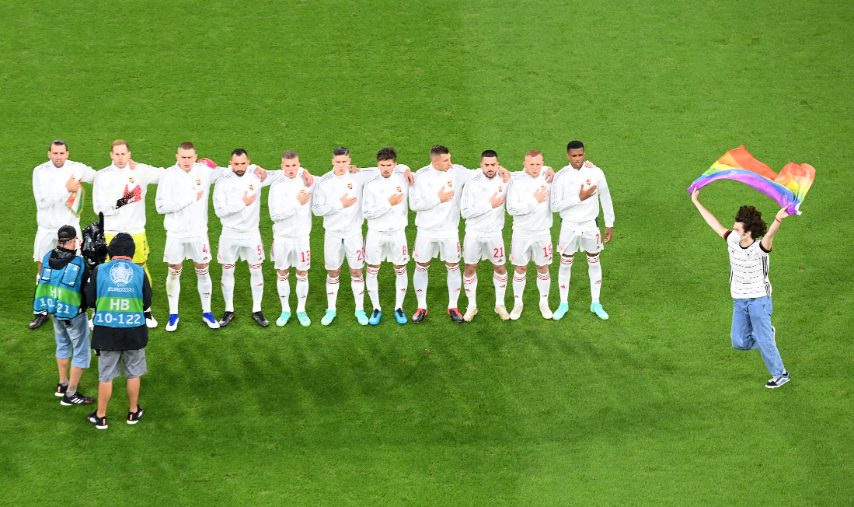 Germania-Ungheria, invasione di campo con bandiera arcobaleno: le immagini a pochi secondi dal fischio d'inizio