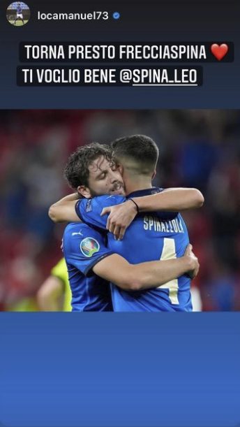 Un brutto infortunio durante Belgio-Italia ha fatto finire anticipatamente i suoi Europei. Leonardo Spinazzola stava giocando alla grande, come riconosciuto da più parti. E il mondo del calcio si è stretto intorno a lui con tanti messaggi. Quelli dei suoi compagni di avventura in Nazionale, compagni di squadra della Roma e amici. Ecco una raccolta di storie Instagram che testimoniano l'affetto per il terzino.