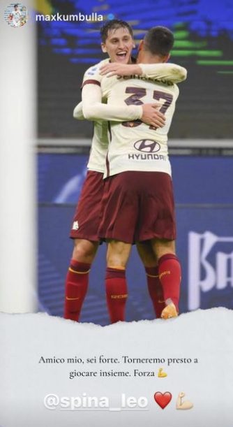Un brutto infortunio durante Belgio-Italia ha fatto finire anticipatamente i suoi Europei. Leonardo Spinazzola stava giocando alla grande, come riconosciuto da più parti. E il mondo del calcio si è stretto intorno a lui con tanti messaggi. Quelli dei suoi compagni di avventura in Nazionale, compagni di squadra della Roma e amici. Ecco una raccolta di storie Instagram che testimoniano l'affetto per il terzino.