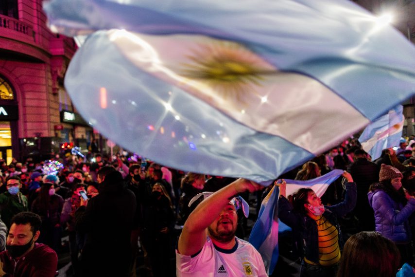 In plaza de la República l'obelisco è illuminato con i colori della bandiera argentina, intorno una marea di persone che festeggiano la Copa America dopo 28 anni dall'ultima vittoria. Immancabili bandiere e magliette di Maradona, mai dimenticato, soprattutto a pochi mesi dalla sua morte.