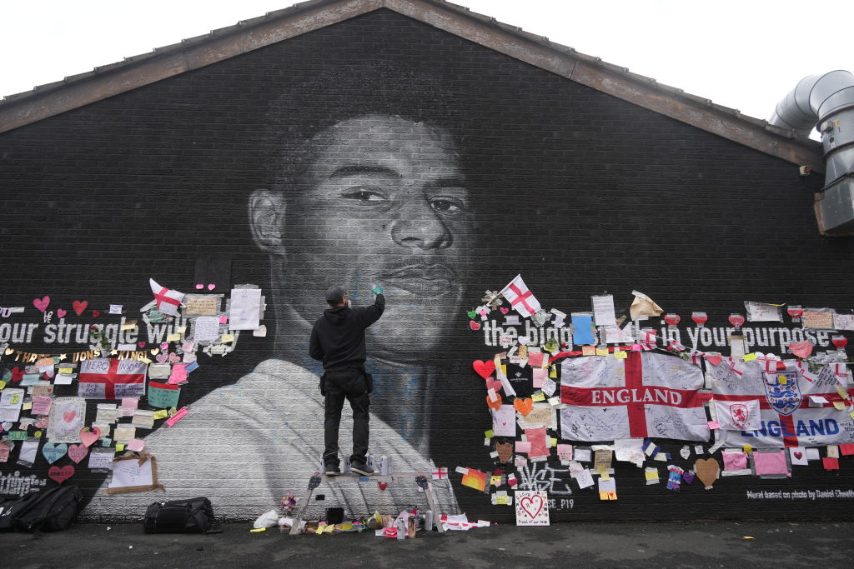 Dopo che alcuni vandali hanno ricoperto il murales dedicato a Rashford di scritte e simboli offensivi, anche di matrice razzista (dopo il suo errore dal dischetto nella finale contro l'Inghilterra), i tifosi hanno deciso di ricoprire il tutto con cuori, lettere e parole di sostegno al giocatore del Manchester United e dell'Inghilterra. Alla fine l'artista che ha realizzato l'opera ha rimesso tutto a posto, riportando il murales alla sua versione originale