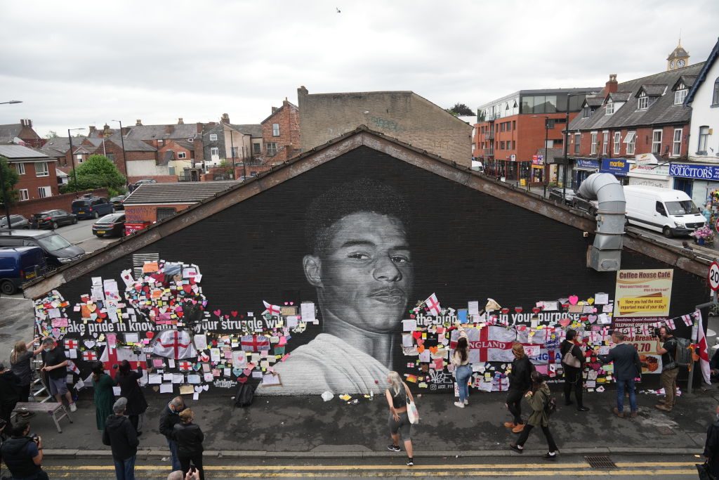 Dopo che alcuni vandali hanno ricoperto il murales dedicato a Rashford di scritte e simboli offensivi, anche di matrice razzista (dopo il suo errore dal dischetto nella finale contro l'Inghilterra), i tifosi hanno deciso di ricoprire il tutto con cuori, lettere e parole di sostegno al giocatore del Manchester United e dell'Inghilterra. Alla fine l'artista che ha realizzato l'opera ha rimesso tutto a posto, riportando il murales alla sua versione originale