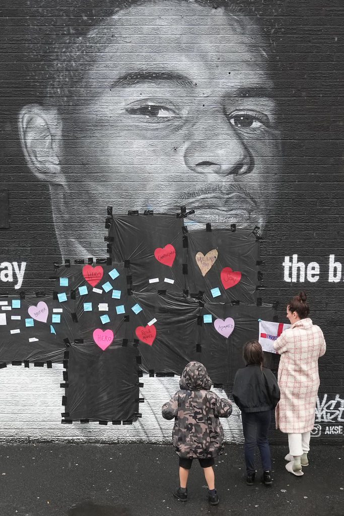 Dopo che alcuni vandali hanno ricoperto il murales dedicato a Rashford di scritte e simboli offensivi, anche di matrice razzista (dopo il suo errore dal dischetto nella finale contro l'Inghilterra), i tifosi hanno deciso di ricoprire il tutto con cuori, lettere e parole di sostegno al giocatore del Manchester United e dell'Inghilterra. Alla fine l'artista che ha realizzato l'opera ha rimesso tutto a posto, riportando il murales alla sua versione originale
