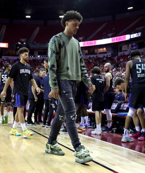 Non solo sul parquet, a Paolo Banchero piace strabiliare anche fuori il campo da basket. La prima scelta assoluta dell'ultimo draft ama decisamente capi alla moda e non disdegna di indossare abiti o accessori che ai più possono sembrare eccessivi o stravaganti. Come in questo caso, in una partita di Summer League di qualche giorno fa.