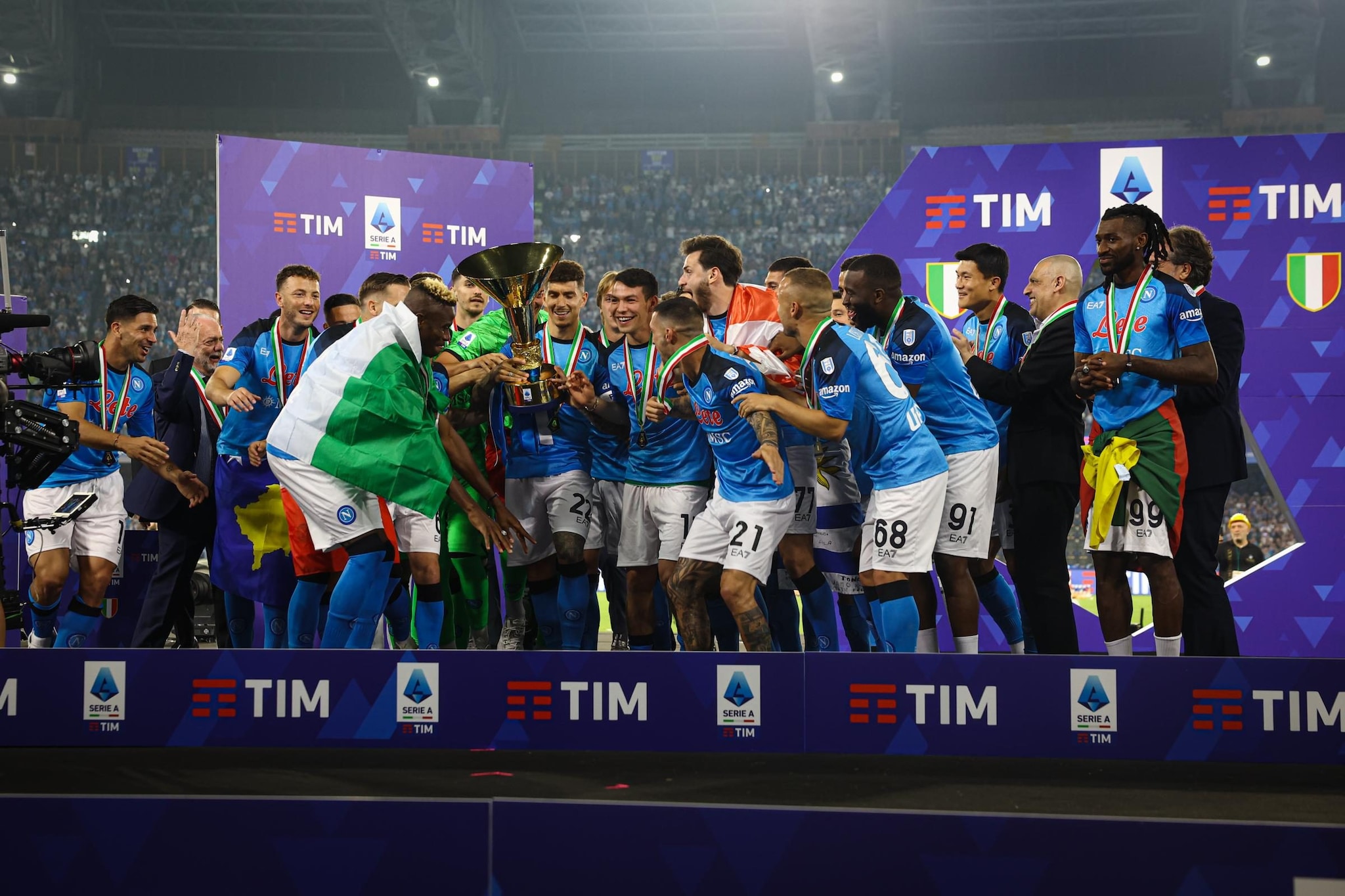 Tanti gli artefici di questa impresa: dal tecnico Luciano Spalletti alle stelle Osimhen (capocannoniere) e Kvaratskhelia. Ma importantissimo è stato anche capitan Di Lorenzo, così come il portiere Meret e un centrocampo fenomenale (Anguissa, Lobotka, Zielinski).