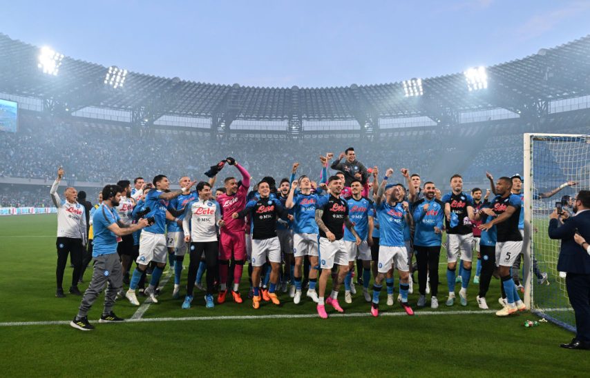 Al Maradona si festeggia ancora lo Scudetto numero 3 vinto dal Napoli. La celebrazione c'è anche in occasione della partita della 34ª Giornata con la Fiorentina. La partita è stata decisa da un gol su rigore di Osimhen, che ne ha fallito pure un altro. Prima della partita tifosi scatenati e gioiosi, e hanno dato vita a una splendida festa con una coreografia meravigliosa. Al termine dell'incontro è poi partita la grande festa organizzata dalla società.