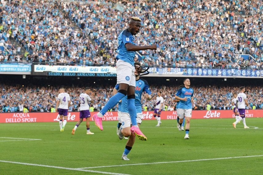 Al Maradona si festeggia ancora lo Scudetto numero 3 vinto dal Napoli. La celebrazione c'è anche in occasione della partita della 34ª Giornata con la Fiorentina. La partita è stata decisa da un gol su rigore di Osimhen, che ne ha fallito pure un altro. Prima della partita tifosi scatenati e gioiosi, e hanno dato vita a una splendida festa con una coreografia meravigliosa. Al termine dell'incontro è poi partita la grande festa organizzata dalla società.
