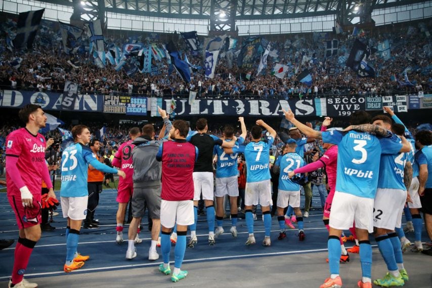 Al Maradona si festeggia ancora lo Scudetto numero 3 vinto dal Napoli. La celebrazione c'è anche in occasione della partita della 34ª Giornata con la Fiorentina. La partita è stata decisa da un gol su rigore di Osimhen, che ne ha fallito pure un altro. Prima della partita tifosi scatenati e gioiosi, e hanno dato vita a una splendida festa con una coreografia meravigliosa. Al termine dell'incontro è poi partita la grande festa organizzata dalla società.