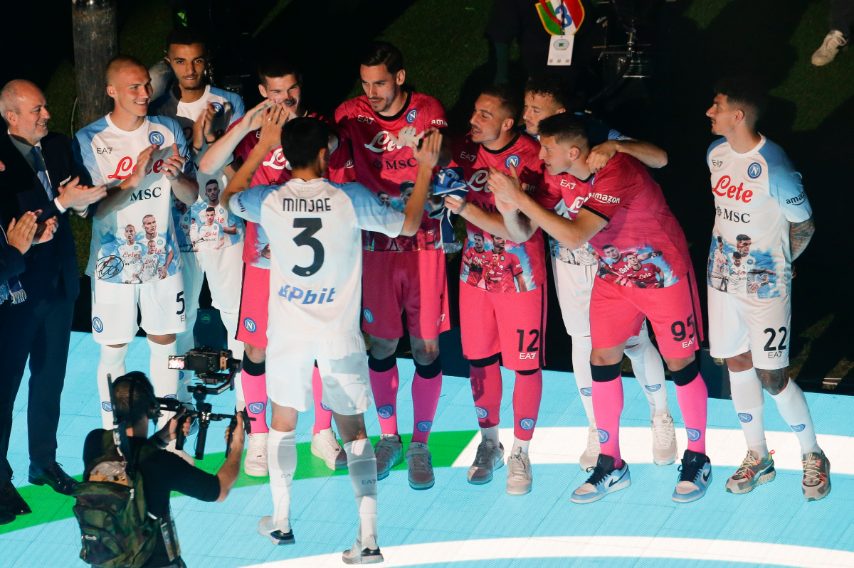 Al Maradona si festeggia ancora lo Scudetto numero 3 vinto dal Napoli. La celebrazione c'è anche in occasione della partita della 34ª Giornata con la Fiorentina. La partita è stata decisa da un gol su rigore di Osimhen, che ne ha fallito pure un altro. Prima della partita tifosi scatenati e gioiosi, e hanno dato vita a una splendida festa con una coreografia meravigliosa. Al termine dell'incontro è poi partita la grande festa organizzata dalla società.
