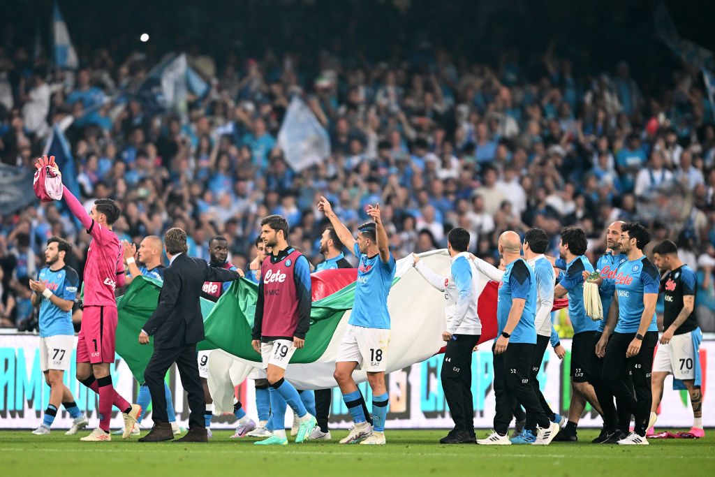 Al Maradona si festeggia ancora lo Scudetto numero 3 vinto dal Napoli. La celebrazione c'è anche in occasione della partita della 34ª Giornata con la Fiorentina. La partita è stata decisa da un gol su rigore di Osimhen, che ne ha fallito pure un altro. Prima della partita tifosi scatenati e gioiosi, e hanno dato vita a una splendida festa con una coreografia meravigliosa. Al termine dell'incontro è poi partita la grande festa organizzata dalla società.