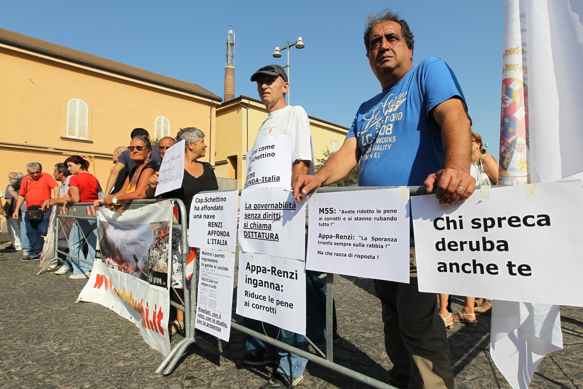 Contestazioni e polemiche per la tappa napoletana del tour di Ferragosto del Presidente del Consiglio: a mobilitarsi lavoratori dei consorzi di bacino (senza stipendio da mesi) e attivisti della Terra dei Fuochi.