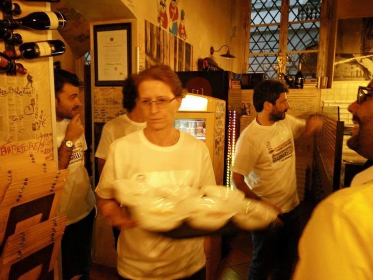 I Parlamentari del Movimento 5 Stelle si sono improvvisati camerieri e pizzaioli servendo la cena agli elettori per finanziare la campagna elettorale di Giacomo Giannarelli, candidato alla presidenza della Regione Toscana.