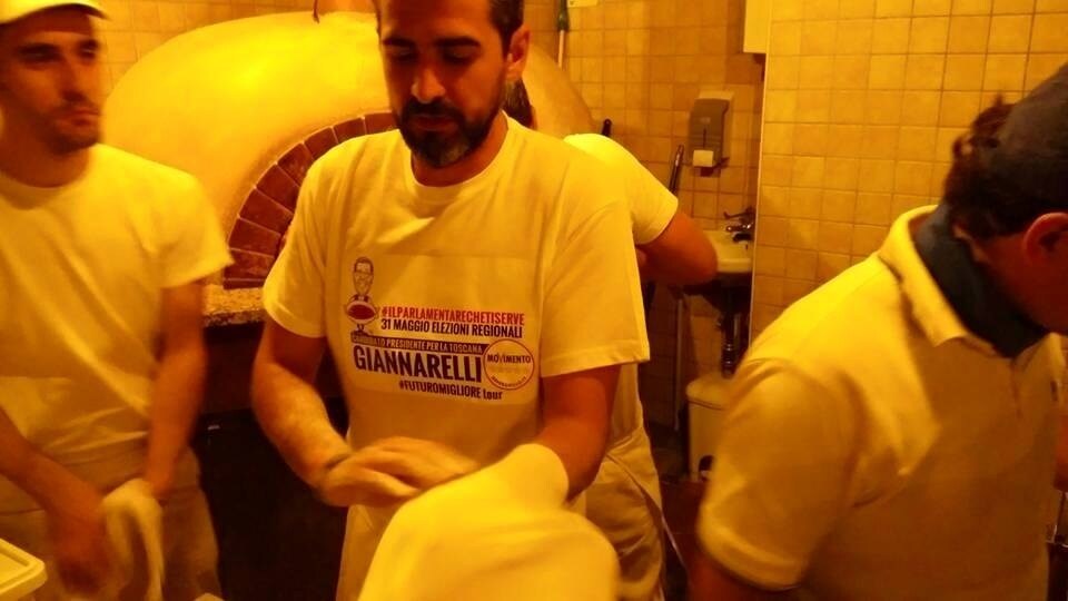 I Parlamentari del Movimento 5 Stelle si sono improvvisati camerieri e pizzaioli servendo la cena agli elettori per finanziare la campagna elettorale di Giacomo Giannarelli, candidato alla presidenza della Regione Toscana.