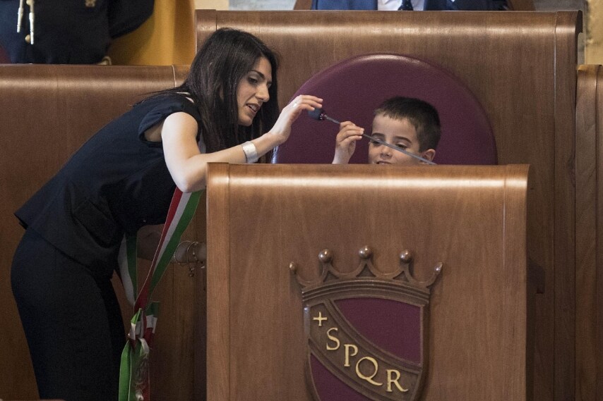Fuori programma in Campidoglio nel corso del primo consiglio comunale di Roma dopo la vittoria di Virginia Raggi alle elezioni. La neo sindaca ha fatto sedere suo figlio sullo scranno riservato al sindaco dell'Aula Giulio Cesare.