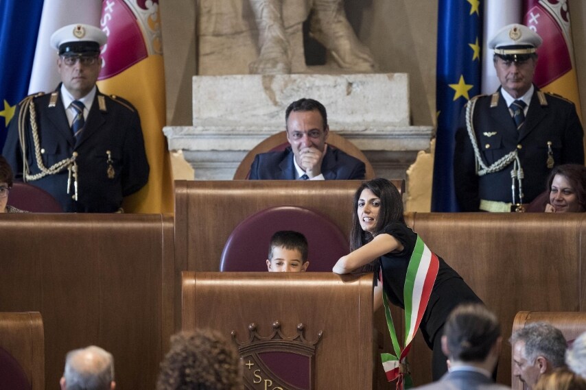 Fuori programma in Campidoglio nel corso del primo consiglio comunale di Roma dopo la vittoria di Virginia Raggi alle elezioni. La neo sindaca ha fatto sedere suo figlio sullo scranno riservato al sindaco dell'Aula Giulio Cesare.
