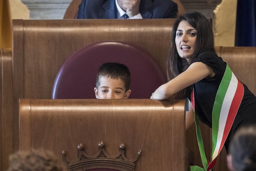 Fuori programma in Campidoglio nel corso del primo consiglio comunale di Roma dopo la vittoria di Virginia Raggi alle elezioni. La neo sindaca ha fatto sedere suo figlio sullo scranno riservato al sindaco dell'Aula Giulio Cesare.
