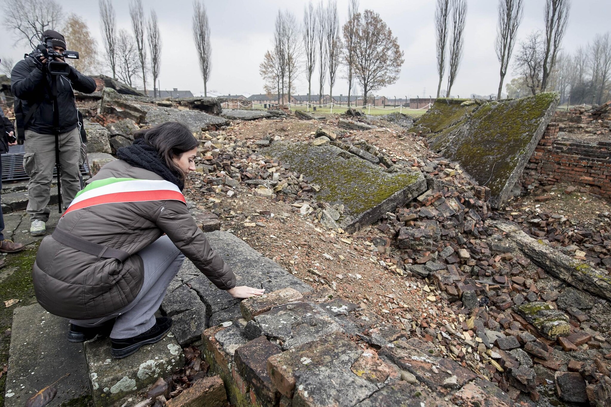 La sindaca, accompagnata dall'assessore Luca Bergamo e dal capogruppo pentastellato Marcello De Vito, visita i luoghi della Shoah insieme a 136 studenti romani.