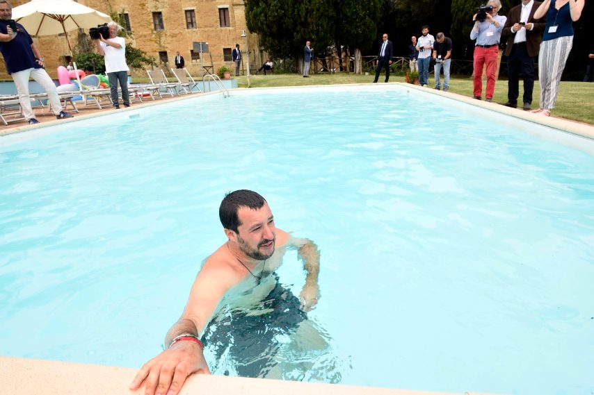 La lotta alla mafia “sarà una priorità” del ministro dell’Interno e del governo, come garantisce lo stesso titolare del Viminale Matteo Salvini. In occasione della visita all’ azienda agricola Suvignana, confiscata alla mafia nel 2007, a Monteroni d’Arbia (Siena), il ministro dell’Interno ha deciso di tuffarsi nella piscina della villa sequestrata. “Dà più soddisfazione farlo qui che alla piscina comunale di Milano”, afferma Salvini parlando di “doppio gusto” dopo aver ricevuto un costume da bagno di colore verde militare. A commentare il tuffo di Salvini anche il vicepresidente del Consiglio Luigi Di Maio: “Non era un bagno in piscina, ma la piscina di un bene confiscato. Guardandolo ho pensato al boss che viveva in quella villa e a quanto stesse rosicando”.